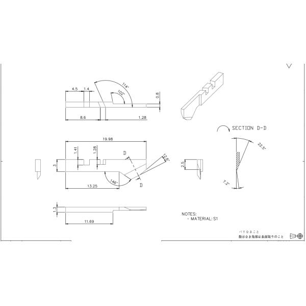 As an industrial cutting tool, tungsten steel blades excel in precision cutting operations. The specifications for this tungsten steel blade are: 19.98*3*1.3*7.2°-12.6°-22.5°-146°, with the reference drawing as follows: